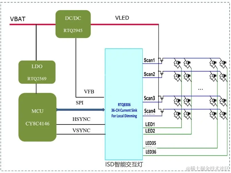 基于以上,我们开发了以PSOC4系列产品中的CY8C4146为主控的,以RTQ8306为LED驱动Driver的汽车智能交互灯方案。