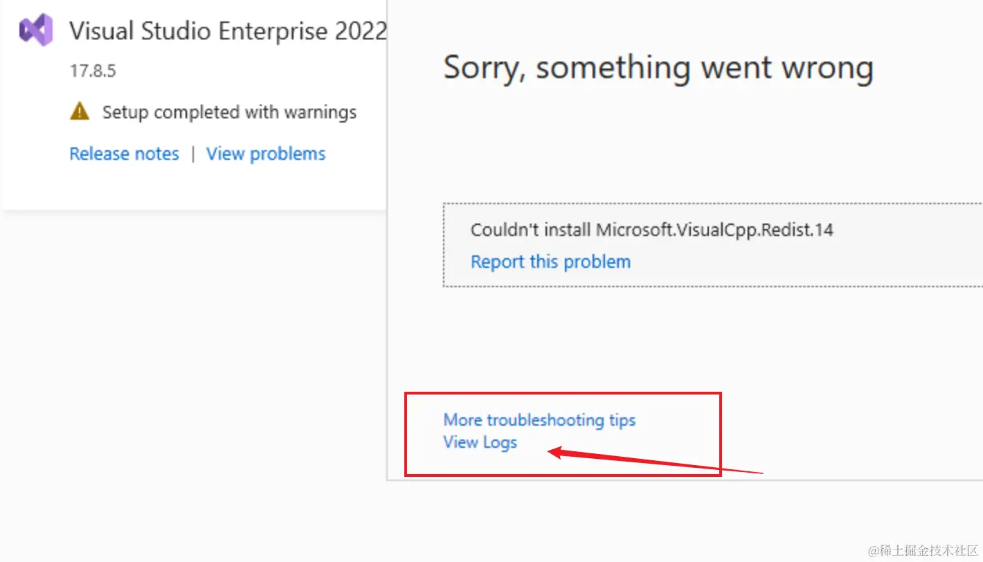 - 在错误日志中寻找安装文件的路径,类似于:C:\ProgramData\Microsoft\VisualStudio\Packages\Microsoft. visualcp . redist .14. latest,version=xx.xx.xxxxx