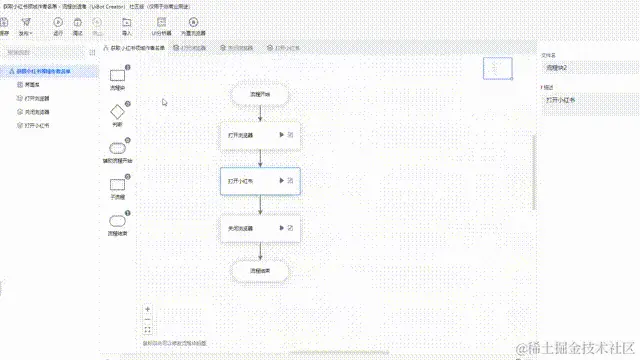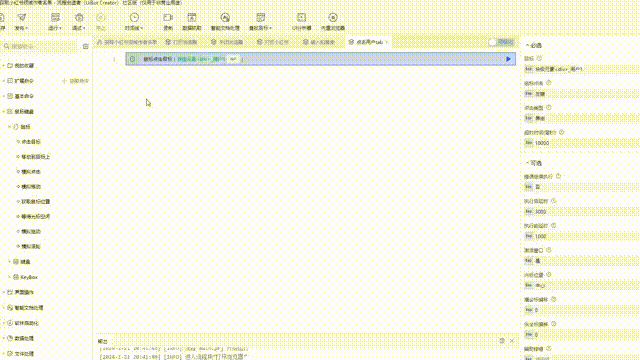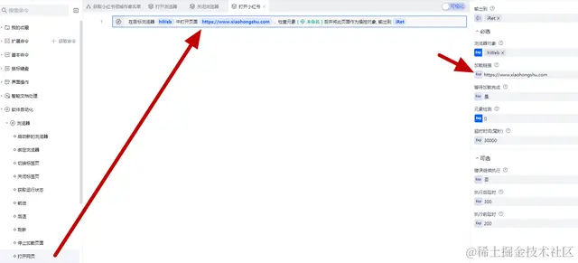 在打开小红书这个流程中我们将打开网页这个命令拖到中间,并在加载链接输入:
