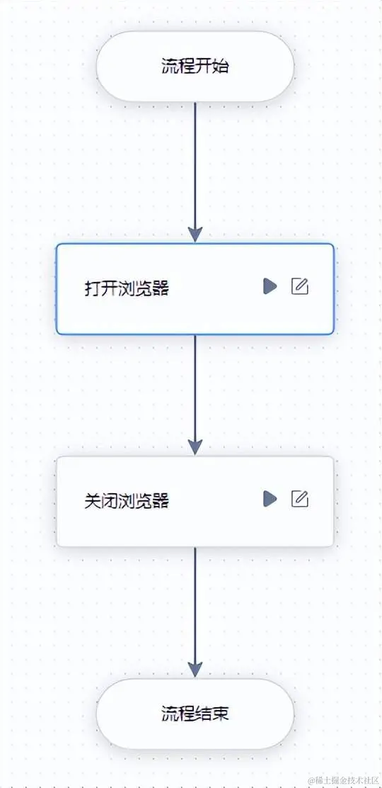 我们快速把开启和关闭浏览器的流程拉一下,记得把打开浏览器流程中的hWeb变量删除并在全局变量添加,在上文我们有说到,大致流程如下: