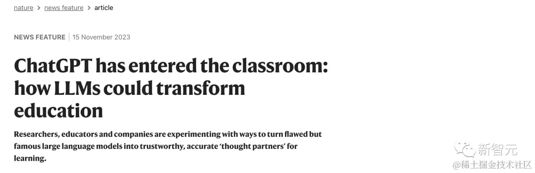 Nature刊文详细剖析了LLM(大语言模型)如何重塑教育事业,并探讨了教育行业的不同参与者如何抓住LLM带来的机会,重新改造这个存在已久的行业。研究人员和教育工作者对于ChatGPT和其底层的LLM技术看到了巨大的潜力。教育机构和学术界也在使用基于OpenAI的LLM技术开发商用辅助工具,如MagicSchool和Eduaide,以帮助教师规划课程和评估学生作业。