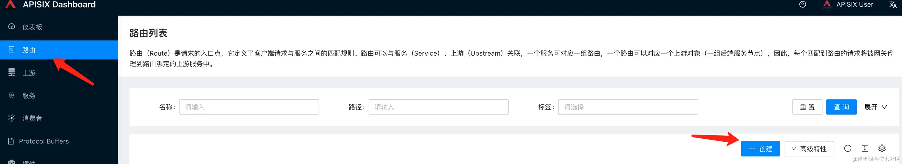 - 在路由列表点击创建按钮