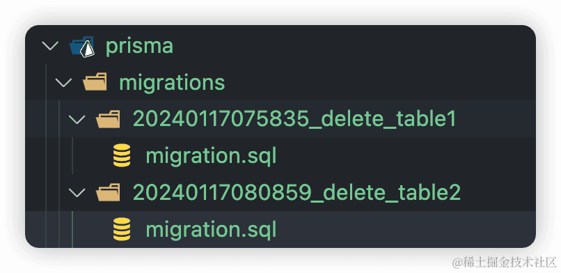 运行pnpm migrate:dev会在prisma目录下生成一个migrations目录,并生成本次操作的sql。