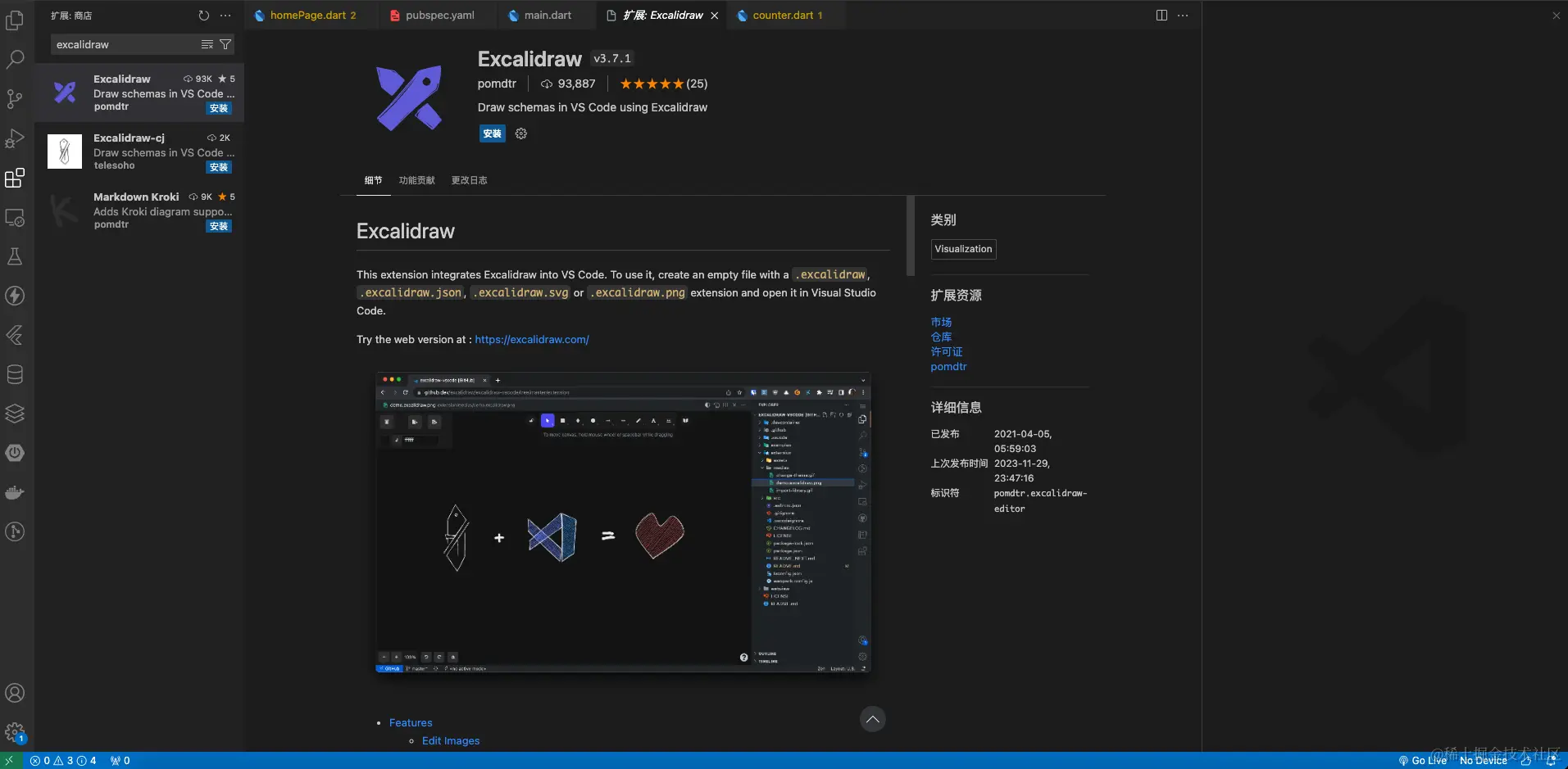 最后 excalidraw还提供了一个VScode 插件,可以直接在vscode里画图了。