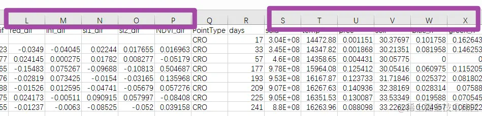 首先,我们明确一下本文的需求。在一个文件夹内,有大量的Excel表格文件(以.csv格式文件为例),其中每一个文件都有着类似如下图所示的数据特征;我们希望,对于下图中紫色框内的列,其中的数据部分(每一列都有一个列名,这个列名不算数据部分)都向上提升一行(比如原本数据部分的第2行变到第1行,原本第3行变到第2行,以此类推)。