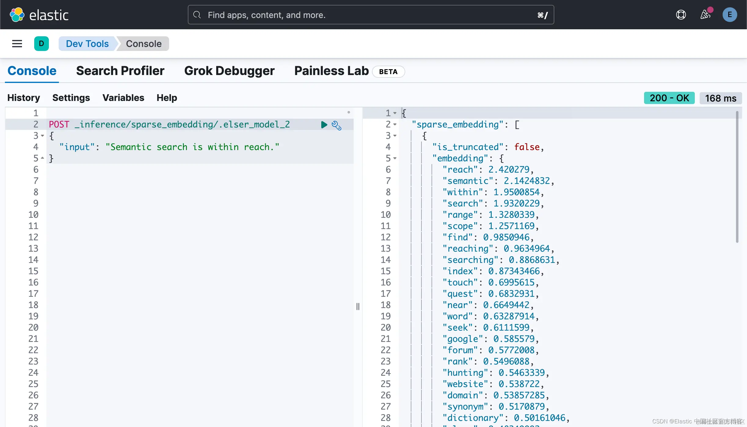 1. POST _inference/sparse_embedding/.elser_model_2
