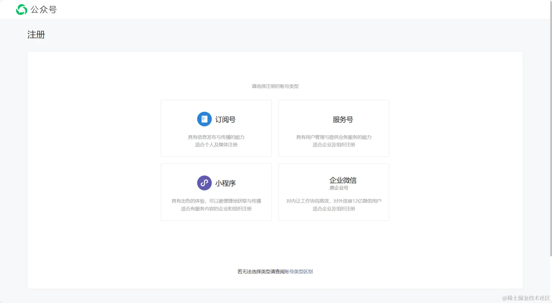 分别是:微信公众号(服务号、订阅号)、企业微信、小程序