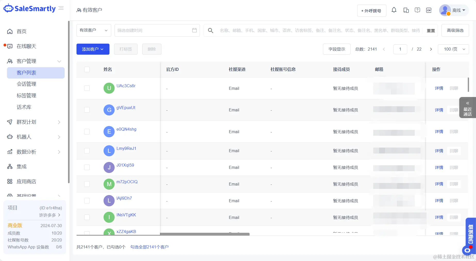 所以多WhatsApp账号运营的时候,需要用一个集成平台来汇总这些账号,把所有账号统一放在一个系统后台中,轻松解决上述的这些问题。