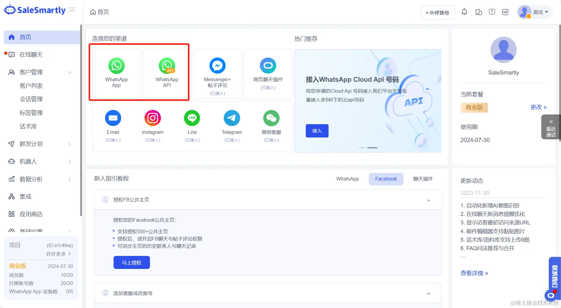 1.打开SaleSmartly,接入全部的WhatsApp设备(可以接入WhatsApp App号和WhatsApp Api号)