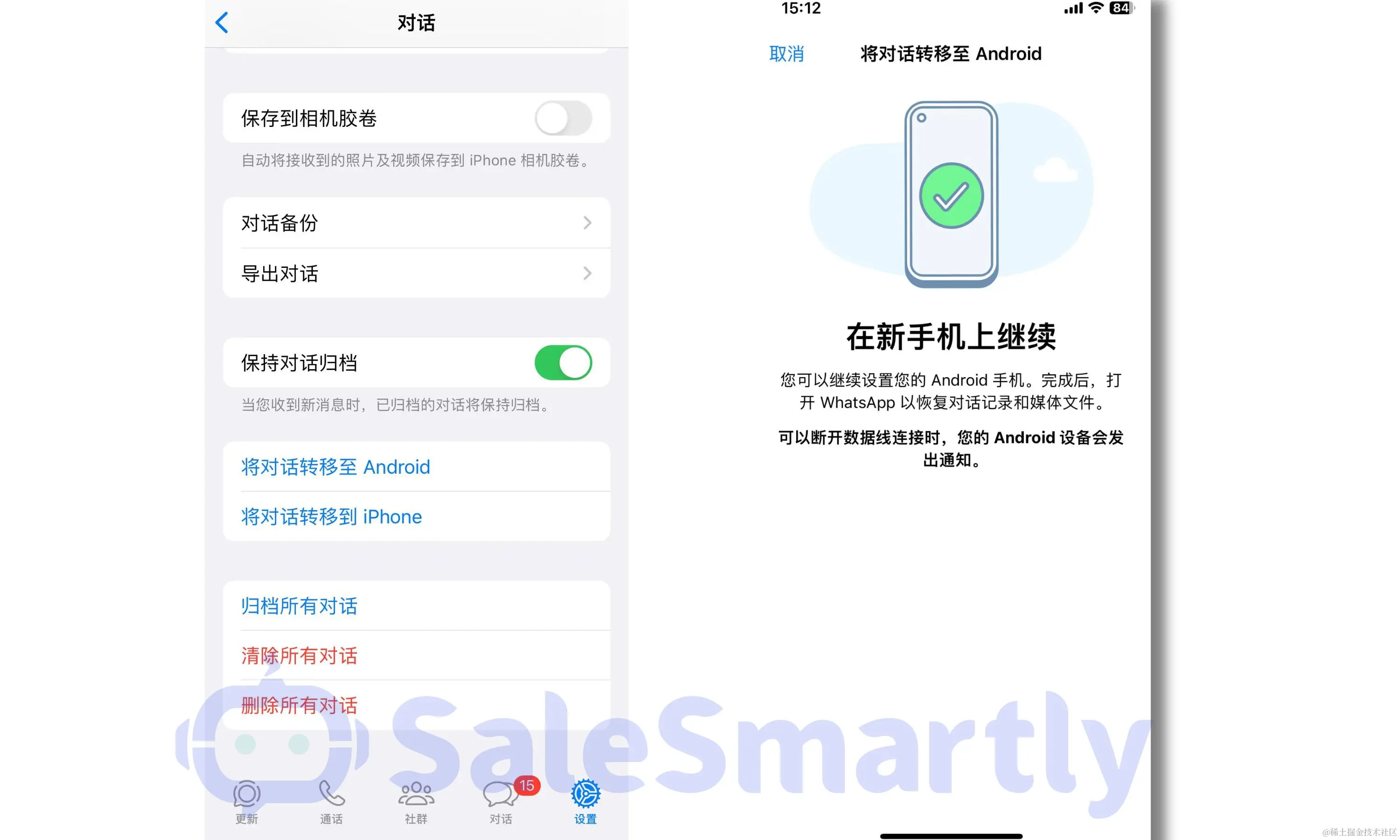 WhatsApp会话信息从安卓转移到iPhone