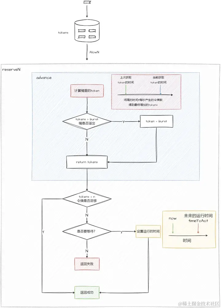 advance 来计算令牌数,超过最大值则丢弃多余的令牌