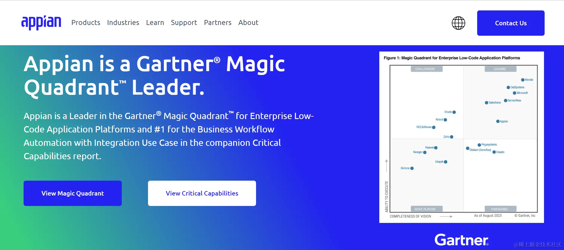 Gartner发布《2021年企业低代码应用平台魔力象限》。Gartner通过产品服务、操作、市场影响力、客户体验、营销执行等多个维度对全球知名厂商进行了严格评选。Appian被评为行业挑战者。