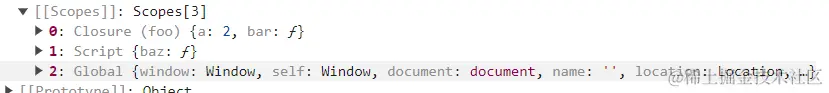 - 每个javascript函数都是Function 对象的实例,Function中有一个内置属性叫做[[Scope]](这个在控制台中的函数的prototype中可以看到)