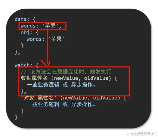 - 作用:监视数据变化,执行一些业务逻辑或异步操作