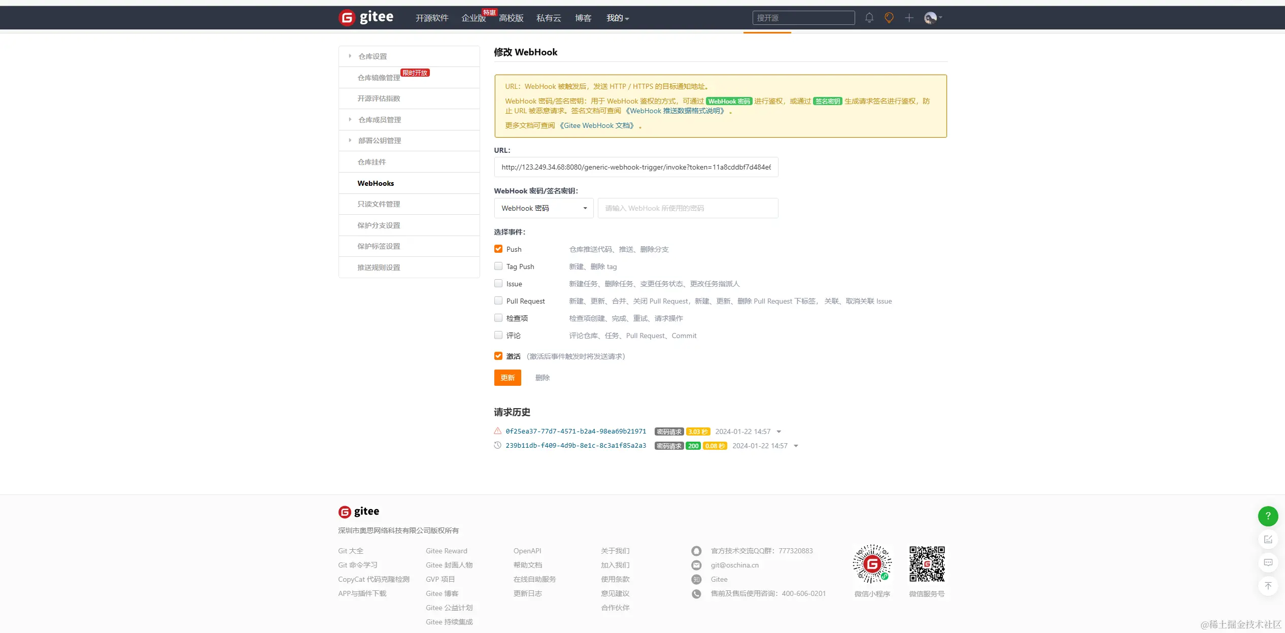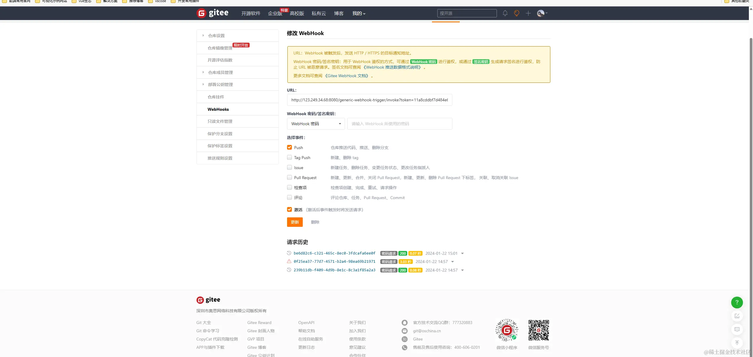 5.gitee webhook配置