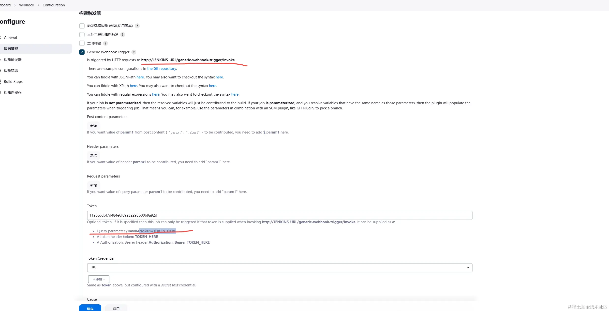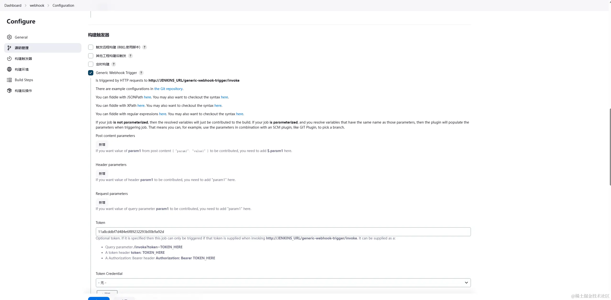 这个url是前面配置构建触发器生成的url 对应着替换就行