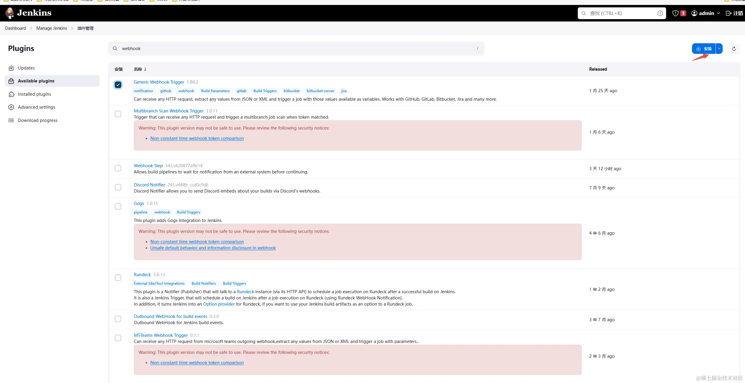 4.5.2 安装Generic Webhook Trigger