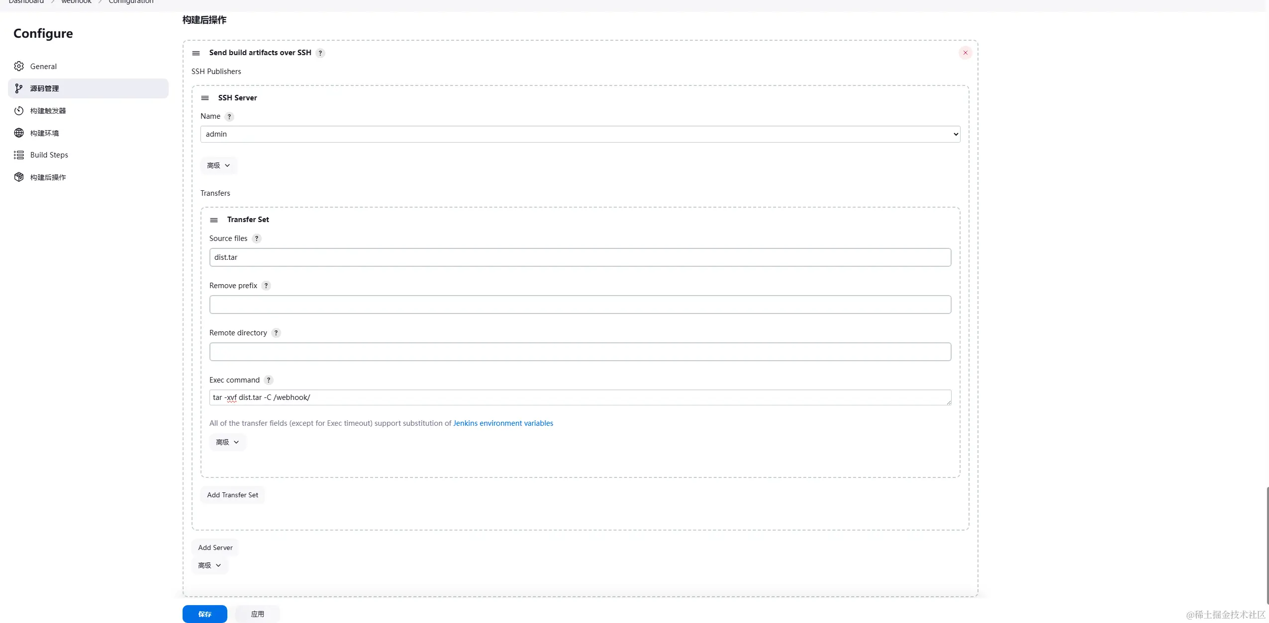 这个会把dist.tar 解压到服务器的 /webhook/文件夹