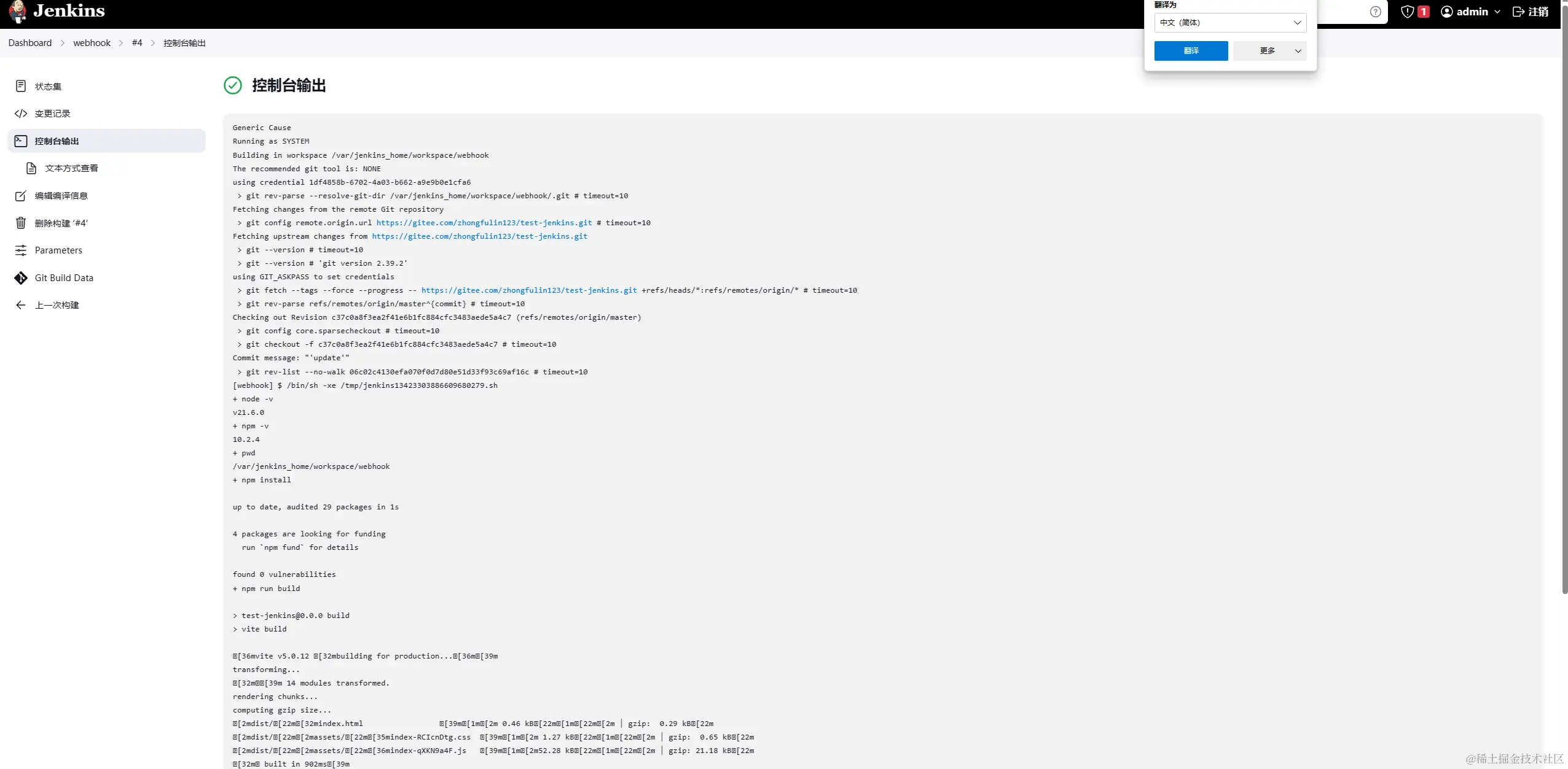 现在你当你提交代码时就会触发webhook,从而执行构建部署