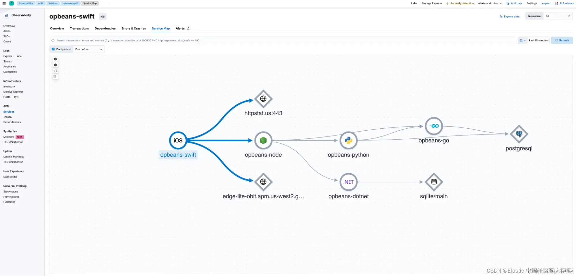 - 基于 OpenTelemetry 的移动 APM 支持:现已正式发布,允许监控 iOS 和 Android 本机应用程序,包括用于可视化服务相互依赖性、端到端跟踪瀑布 (waterfall)、错误和崩溃分析的预构建仪表板。