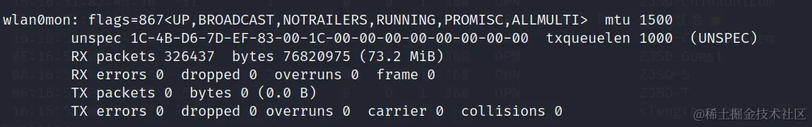 ifconfig,出现wlan0mon则代表成功连接。