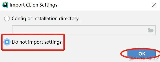 Clion 运行成功后,首先会弹出如下对话框,勾选默认的 Do not import settings 不导入任何配置,然后点击【OK】: