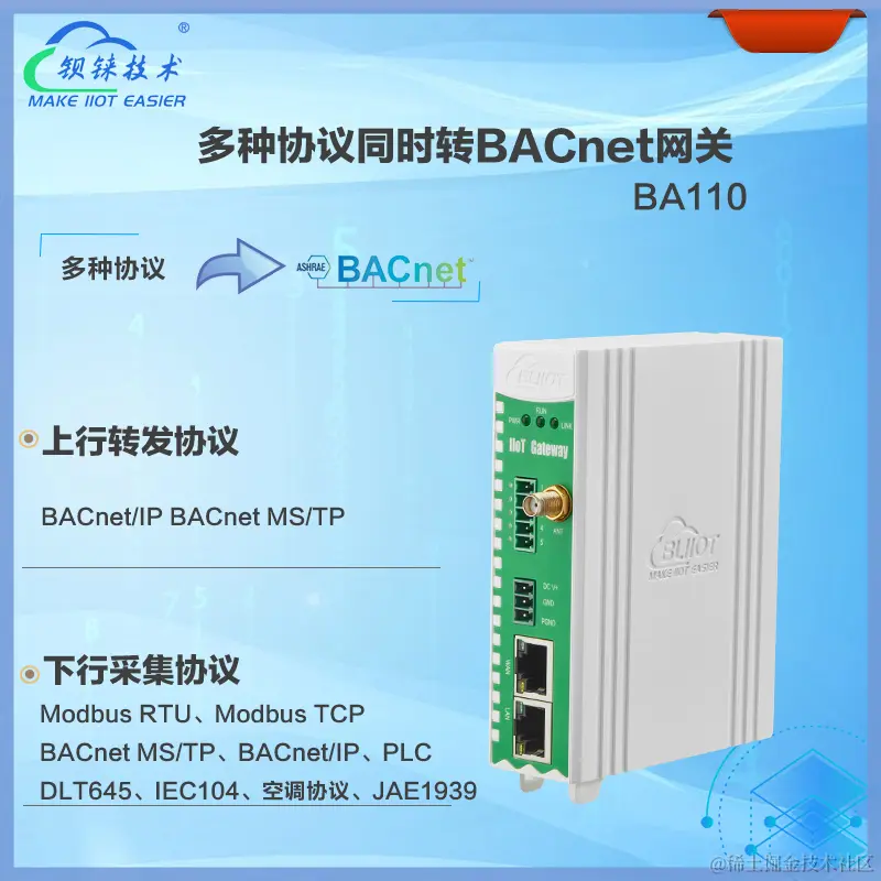 BA110上行转发协议支持BACnet MS/TP和BACnet IP协议。