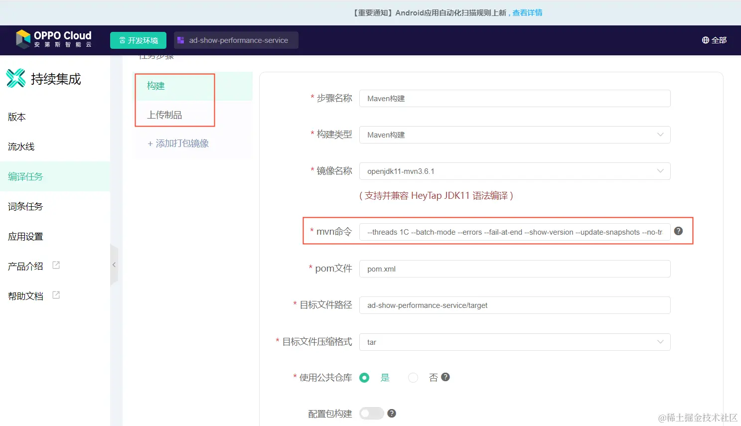- 需要在云平台额外构建mvnd的镜像;
