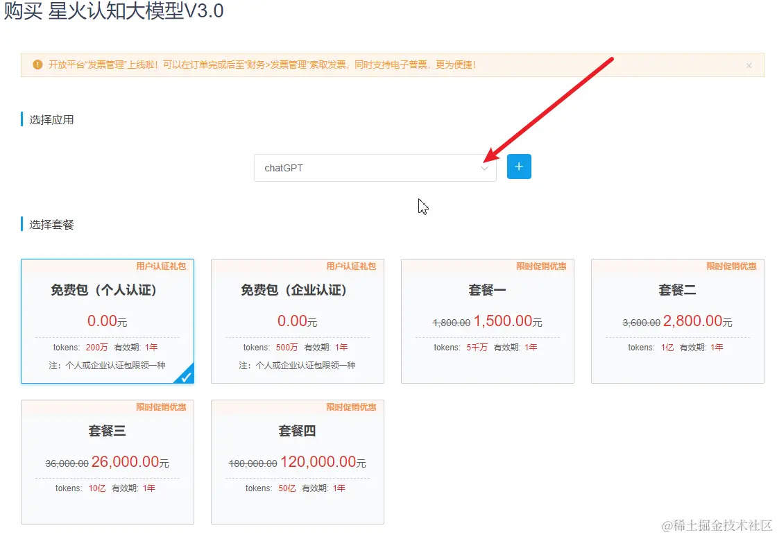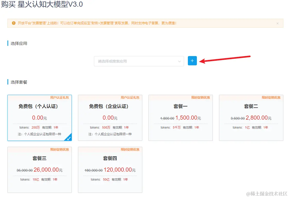 2.3、选择创建的应用,拉到最下面下单购买