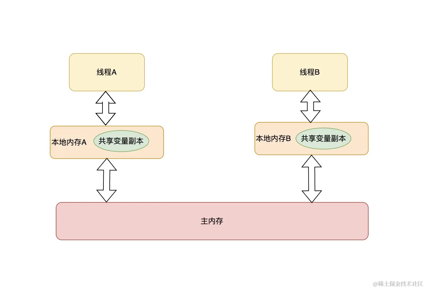 当共享变量的值被一个线程修改时,其他线程可以看到被修改的值,java内存模型是通过在变量修改后将新值同步回主内存,同时让其他的线程可以读取到最新内存的值。