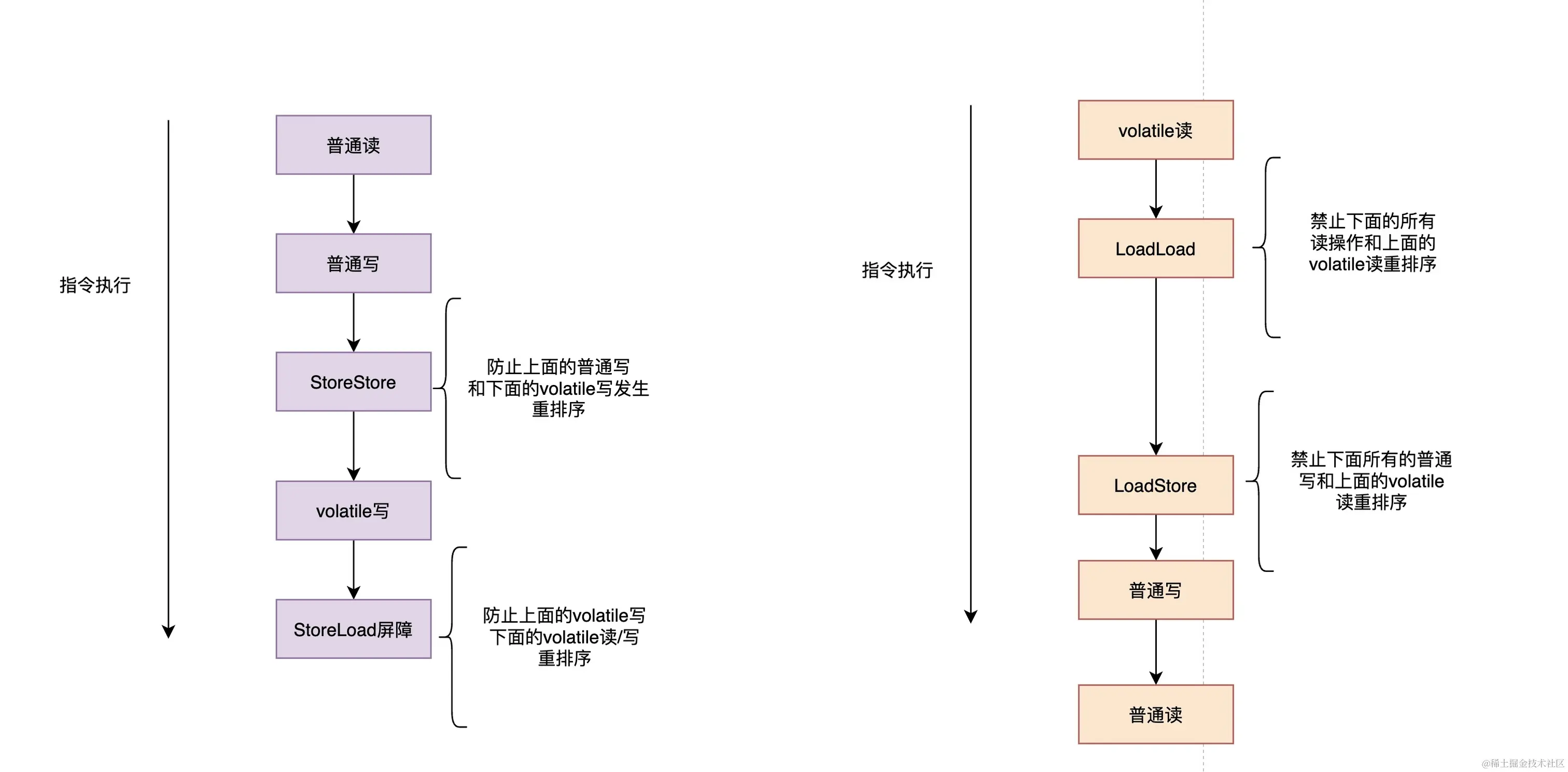 在每个volatile读操作的后面插入一个LoadStore屏障