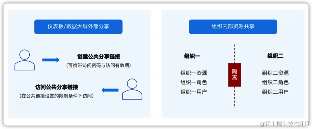DataEase满足了这些需求,并且能够提供数据的协同共享与协作支持,让不同部门轻松共享所需数据。安全性方面,DataEase采用了必要的数据传输加密措施,确保数据在传输中的安全性。通过用户间的数据隔离和分享仪表板时的有效期与访问密码设置,DataEase进一步保障了数据的隐私和安全。