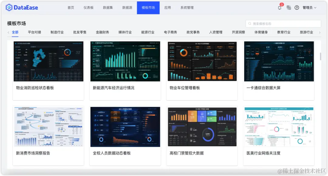 DataEase现代、简洁、易用的用户界面有着非常高的使用友好度,同时能够支持移动端的使用,正好满足百果园业务的诉求。另外,DataEase的UI设计风格与蜜蜂微搭的UI设计风格高度一致。DataEase的模板市场也与蜜蜂微搭的模板化理念相互契合。通过集成DataEase的功能,可以为百果园的业务项目交付提供统一数据分析模板。