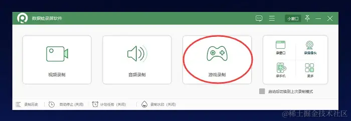 第1步:首先,从官方网站下载并安装数据蛙录屏软件,启动软件后,你将看到直观的用户界面,我们选择中间的 “游戏录制” 模式。