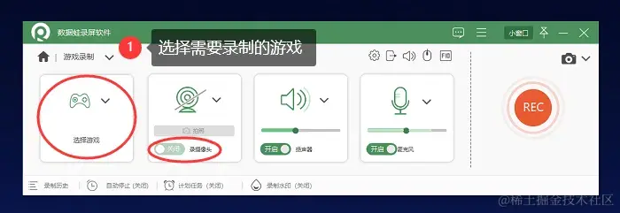 第2步:在 “游戏录制” 页面,我们选择提前打开的游戏窗口,如果您需要录制摄像头,可以在当前页面开启。