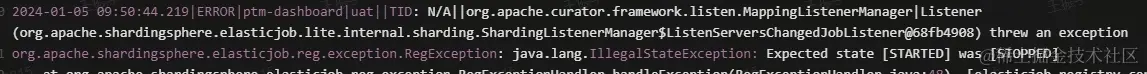 回看图中的异常来解释,RegException是注册异常,提示期望状态是STARTED但是实际上是STOPPED。
