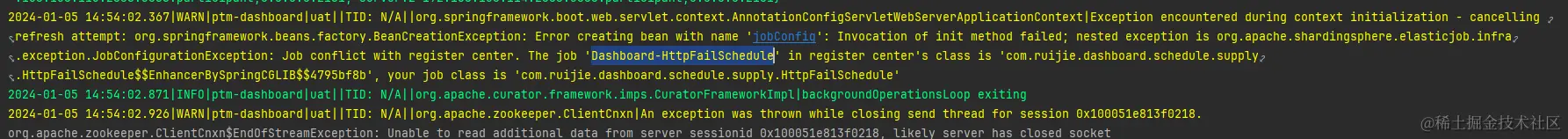 - 同样是测试环境启动,会注册到测试的定时任务平台,只要有一个节点成功,后面的就会报上面那个错误,启动失败