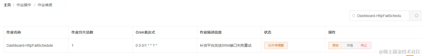 在控制台也能看见该作业,这里分片待调整是还没有运行过,运行过一次后会正常变成RUNNING,状态是正常的。