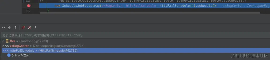 重新回到这个warn日志,这里提示jobConfig这个自定义的定时调度配置类创建失败,原因是当前任务与注册中心冲突。具体原因是任务Dashboard-HttpFailSchedule在定时调度注册中心的类是 "com.ruijie.dashboard.schedule.supply.HttpFailScheduleEnhancerBySpringCGLIB$ $4795bf8b", 而我提交的类是 "com.ruijie.dashboard.schedule.supply.HttpFailScheduleEnhancerBySpringCGLIB$$c43bef1d",如果经常Debug的朋友们应该能快速反应过来,这是很明显的一个代理后的类名。上面这个图和我描述的有出入,是因为这是后面截的图,是删除了注解后的Bean名。