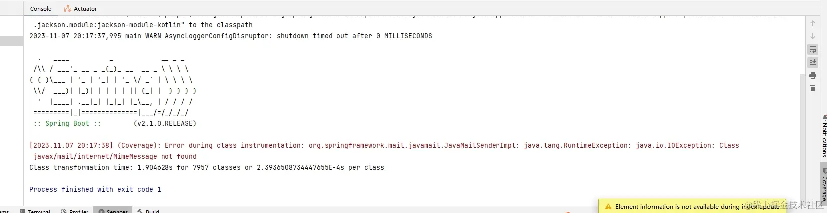 但是这种中间件的异常,往往不能单单看最终的异常,因为嵌入到SpringBoot环境中,很多组件需要通过SpringBoot本身的加载机制注入。比如某个bean没有创建成功或者SpringBoot的某个组件加载失败,但加载失败并不影响SpringBoot启动,这时候就可能会导致三方的中间件因为缺失某个核心类失败,最后打印的堆栈异常也是这个核心类缺失。很明显这个堆栈日志的问题是表象,我们需要根据SpringBoot给出的详细日志进一步分析。