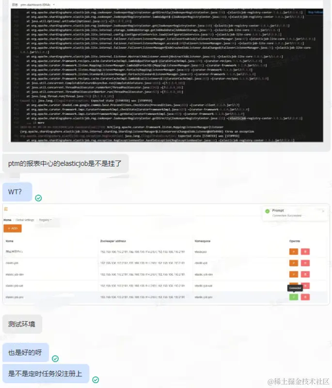 事件起源于同事的一张图,没有前因后果,上来问了一下是不是部署的Elastic-Job中间件宕机了,我看了下控制台,链接都是正常的。因为这个中间件部署正式环境有两年了,不会是配置问题,所以判定是代码问题。