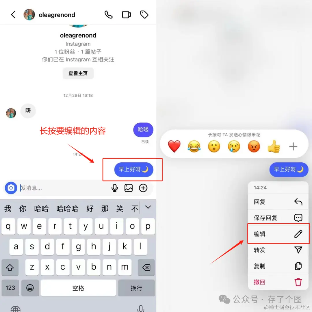 IG新推出的【编辑信息】功能真的太方便了,粗心但是又酷爱IG聊天的小伙伴们再也不用担心打错字了,该功能可以直接在原有基础上更改信息内容!最最最重要的是使用起来也很简单,有兴趣的小伙伴继续往下看吧~