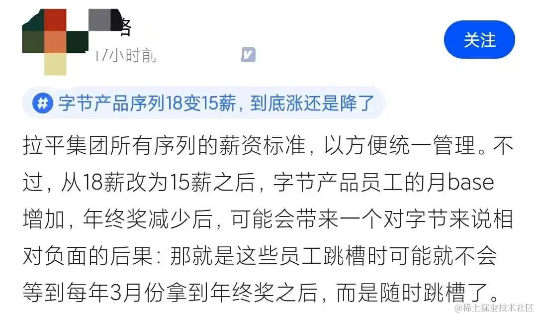 字节新规之下,员工年终奖最高就是三个月,这相当于变相调高了员工的月薪 base。相当于总包不变,但是呢,我把月薪提高,不把大头加入年终奖。因为跳槽的时候,月薪Base对涨薪意义重大。