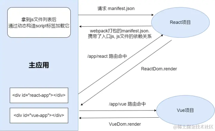 这样在主应用检测路由命中子应用的规则之后就会触发其渲染函数,把子应用挂载到相应的dom下。