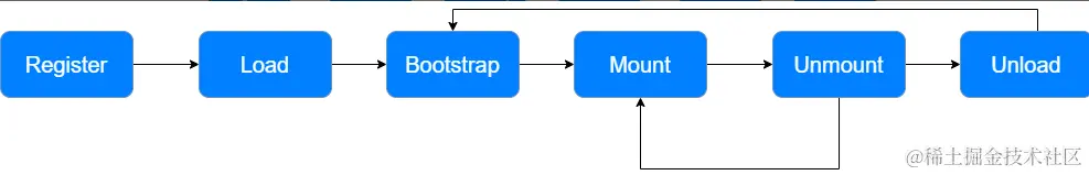 single-spa的另一个关键点就是生命周期,子应用生命周期包含bootstrap,mount,unmount三个回调函数。主应用在管理子应用的时候,通过子应用暴露的生命周期函数来实现子应用的启动和卸载。