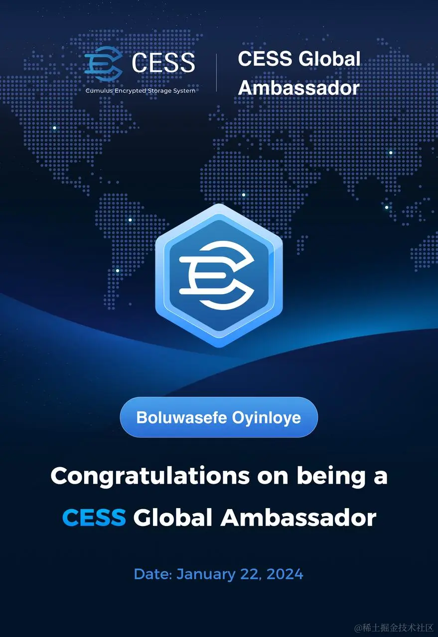 CESS(Cumulus Encrypted Storage System)很荣幸地向大家宣布「CESS 全球大使计划」的首批入选大使!