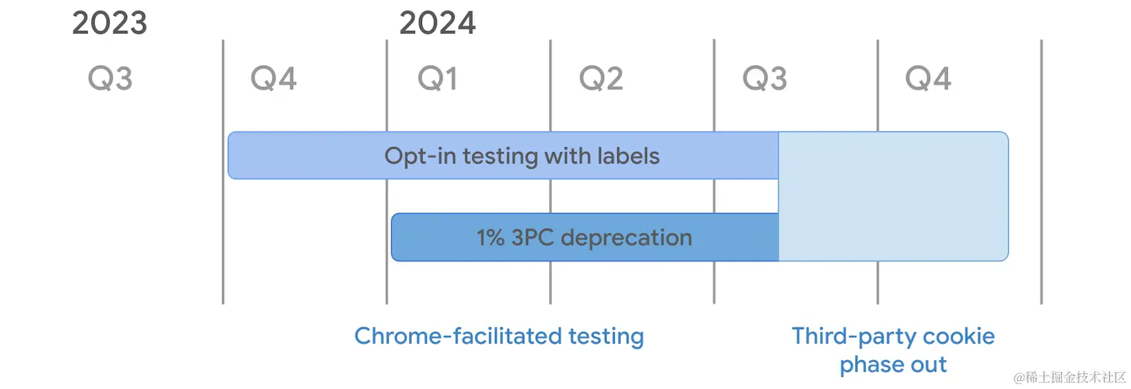 Chrome计划从2024年第一季度开始禁用1%的用户的第三方cookie,以便进行测试,并从2024年第三季度开始逐步提高到100%的用户。