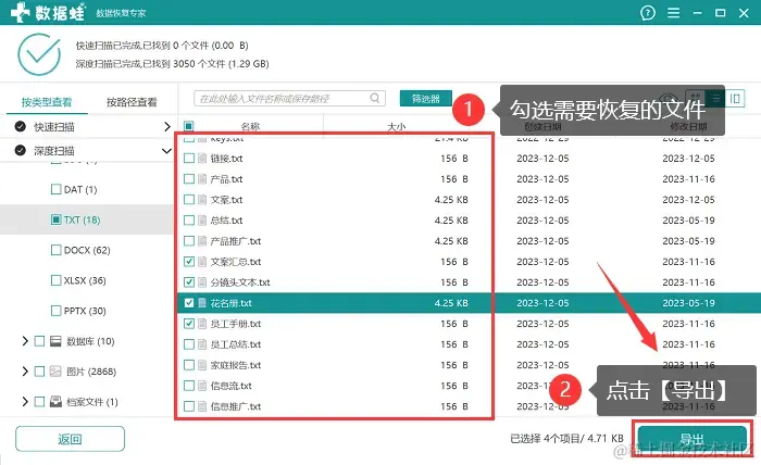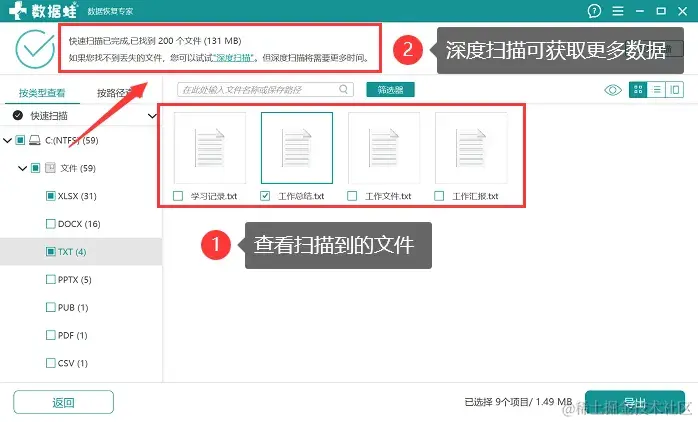 第3步:等待深度扫描完成,建议用户直接在 【筛选器】中对文件定位,找到需要恢复的文件后,将其【导出】。