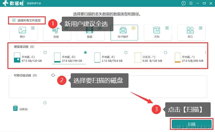 并且软件支持多种类型数据的扫描和恢复,同时也支持免费试用,如果需要使用软件,可以尝试下载软件后按下方步骤进行操作。