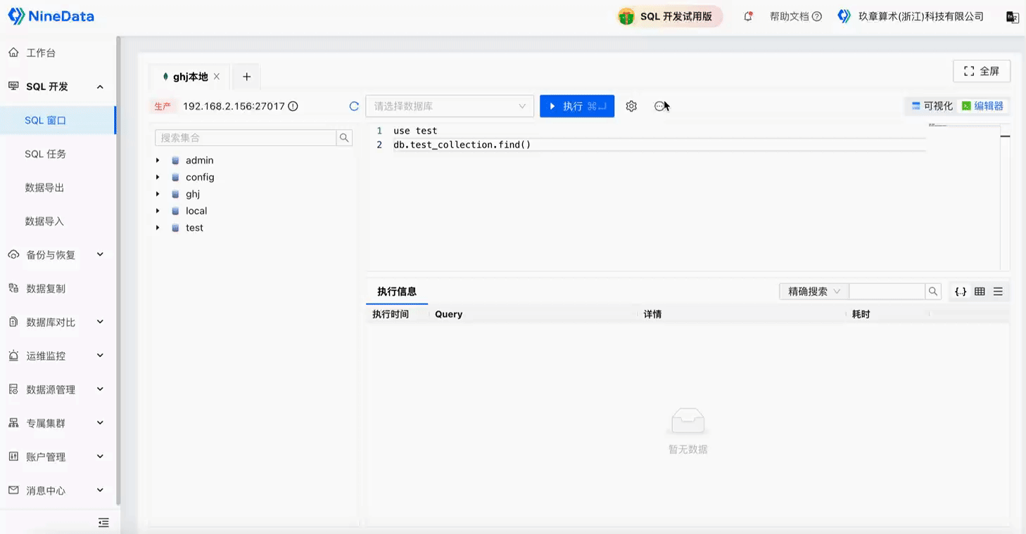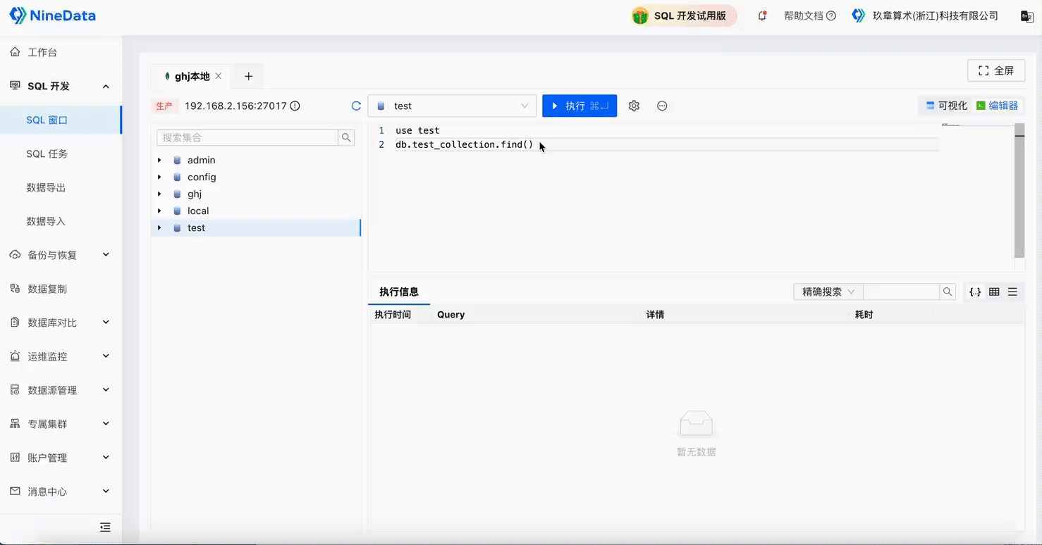 NineData 在最新的一次发布中,提供了对 MongoDB 数据源的支持,并针对上述问题,为企业提供了高效、便捷的解决方案: